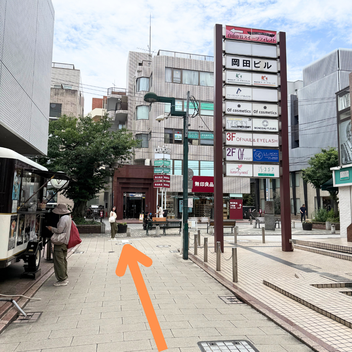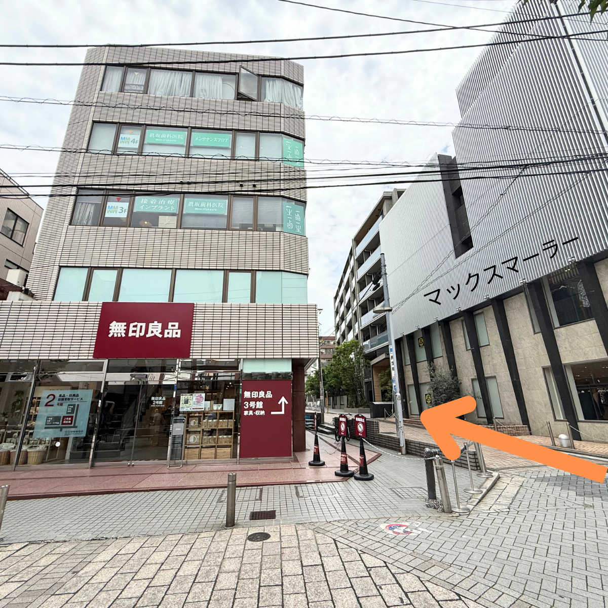 ④正面にある ”無印良品” と ”マックスマーラー” の間の道をさらに直進します。
