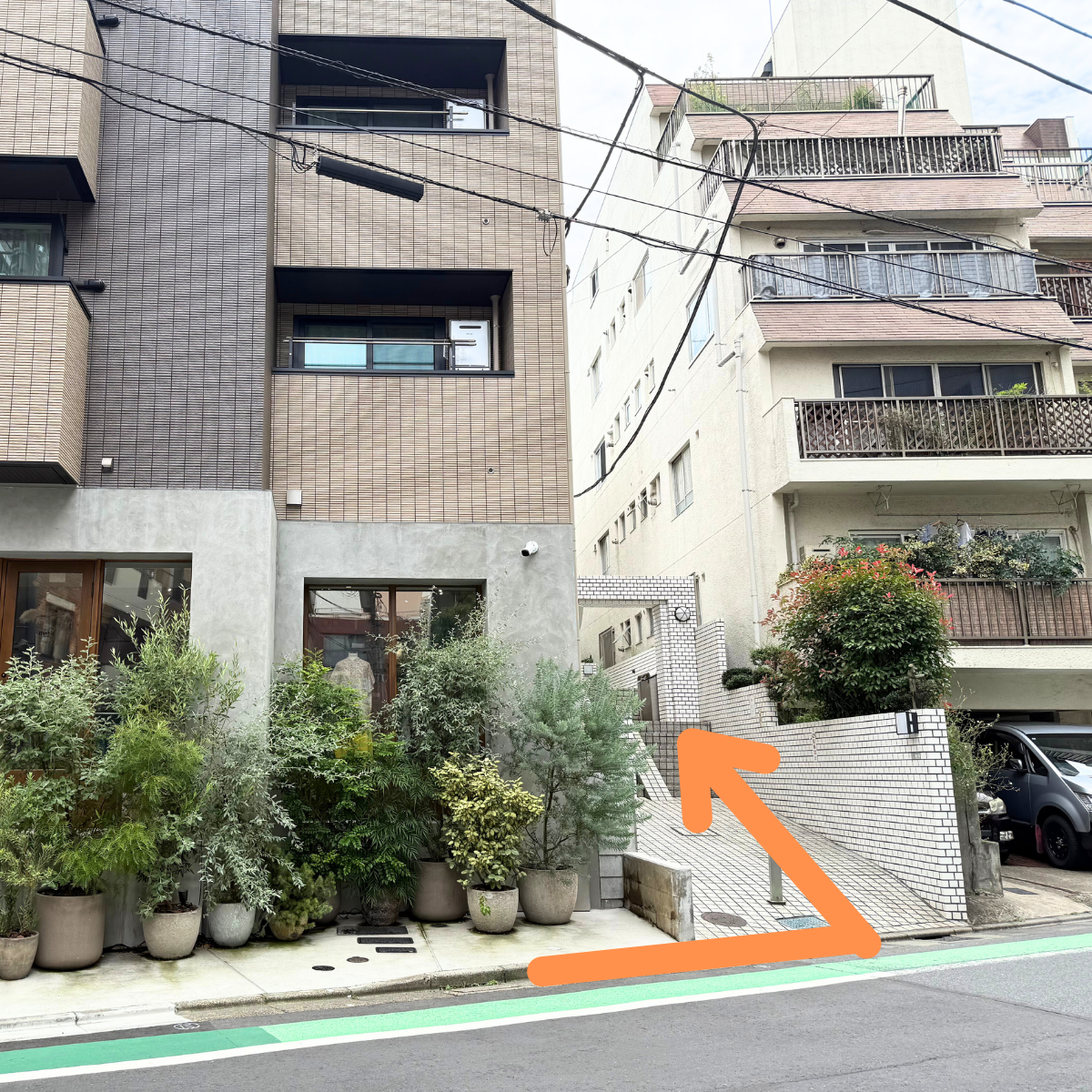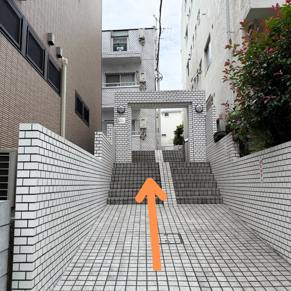 ⑥その右側に白いタイルの階段がありますので、その階段を上った正面の建物「ヴィラ自由が丘」の1階102号室が当サロンです。