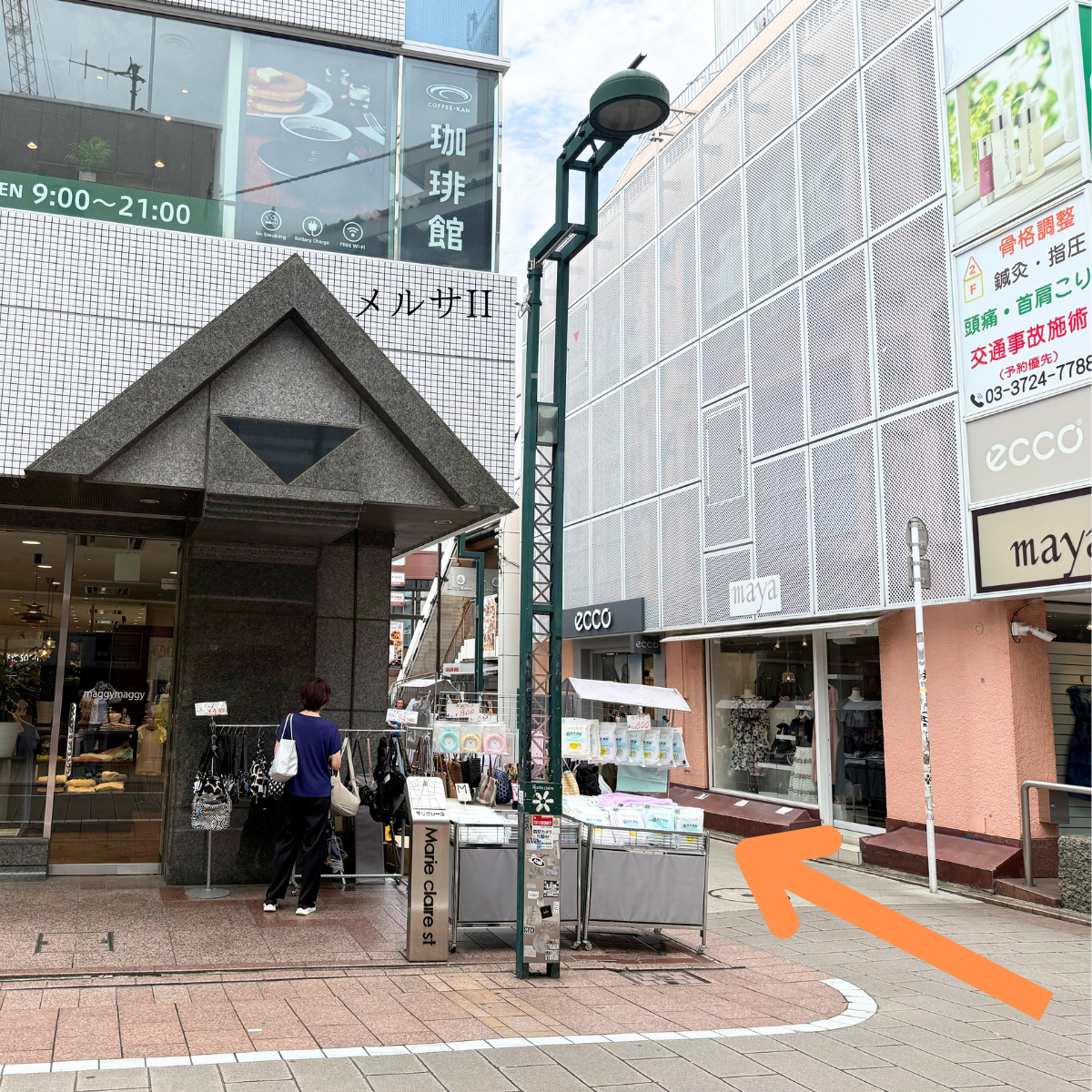 ②改札を背にして、正面建物 メルサpartⅡの右側の道を直進します。